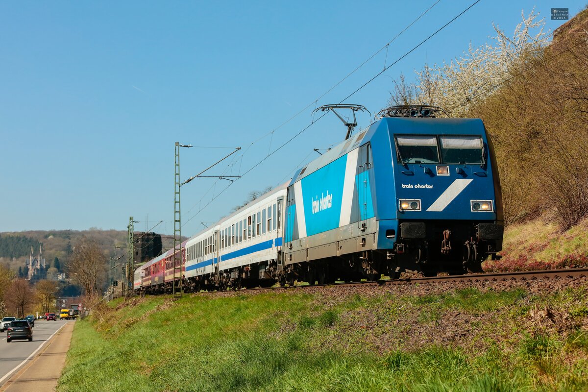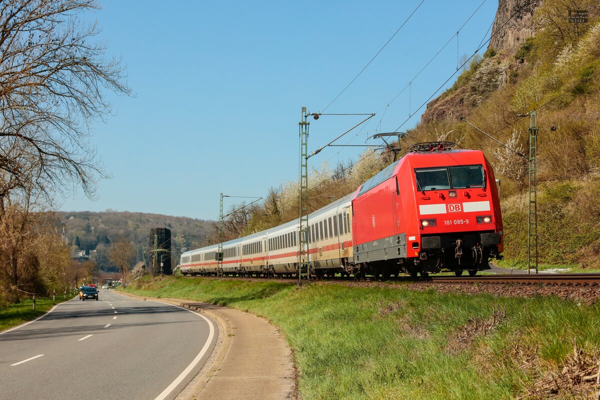 DB 101 085-9 mit IC2013 in Erpel, April 2025.
