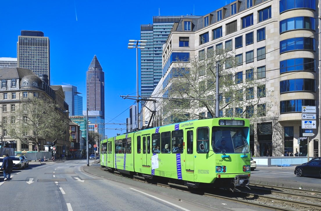 Tram 125, nähert sich der Haltestelle Luxexpo aus Richtung Flughafen von Luxemburg. Diese verkehren im 8 Minuten Takt. 03.2025