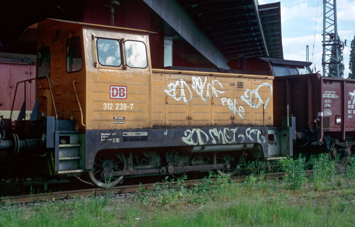 Ex DR-Kleinlok 312 239 am 03.06.1997 im Bw. Berlin-Pankow.