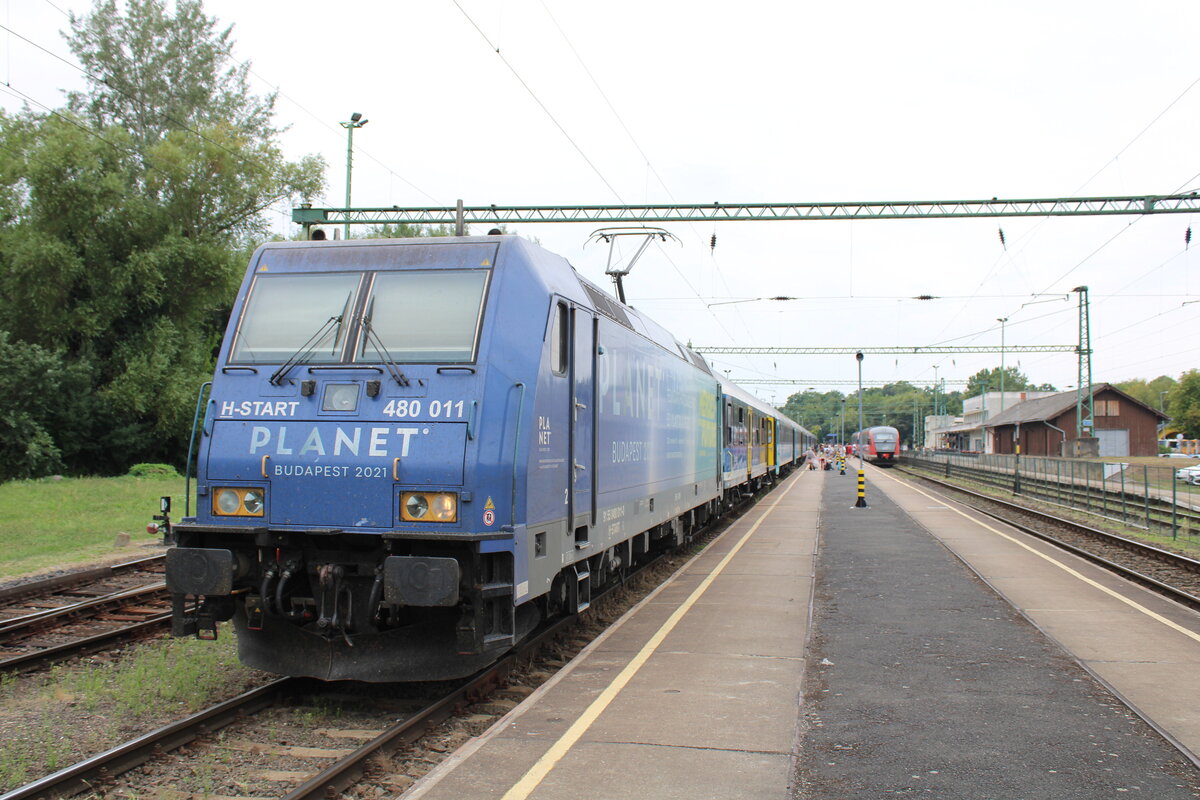 MÁV-START 480 011 "Planet Budapest 2021" mit dem IC 862 "Balaton" aus Budapest-Déli, am 26.07.2025 nach der Ankunft in Keszthely.