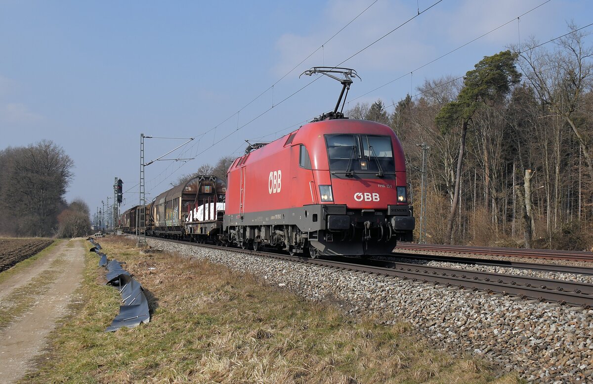 1216 025 flitzt am 04.03.23 bei Eglharting Richtung Österreich