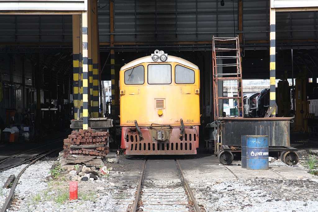 Wegen der Bauarbeiten für den westlichen Teil (Thailand Cultural Centre - Bang Khun Non, 13,4 Km) der MRT Orange Line (Yaek Rom Klao - Bang Khun Non, 35,9 Km) mussten in der Thon Buri Station und auch im Depot umfangreiche Änderungen an der Gleisgeometrie vorgenommen werden. - Bereich der Wagenwerkstätte im Depot am 28.Mai 2025.