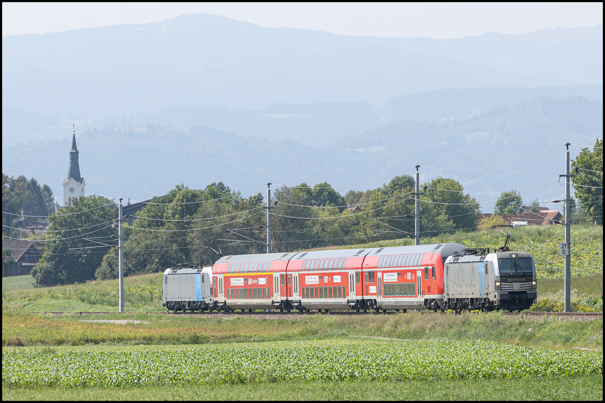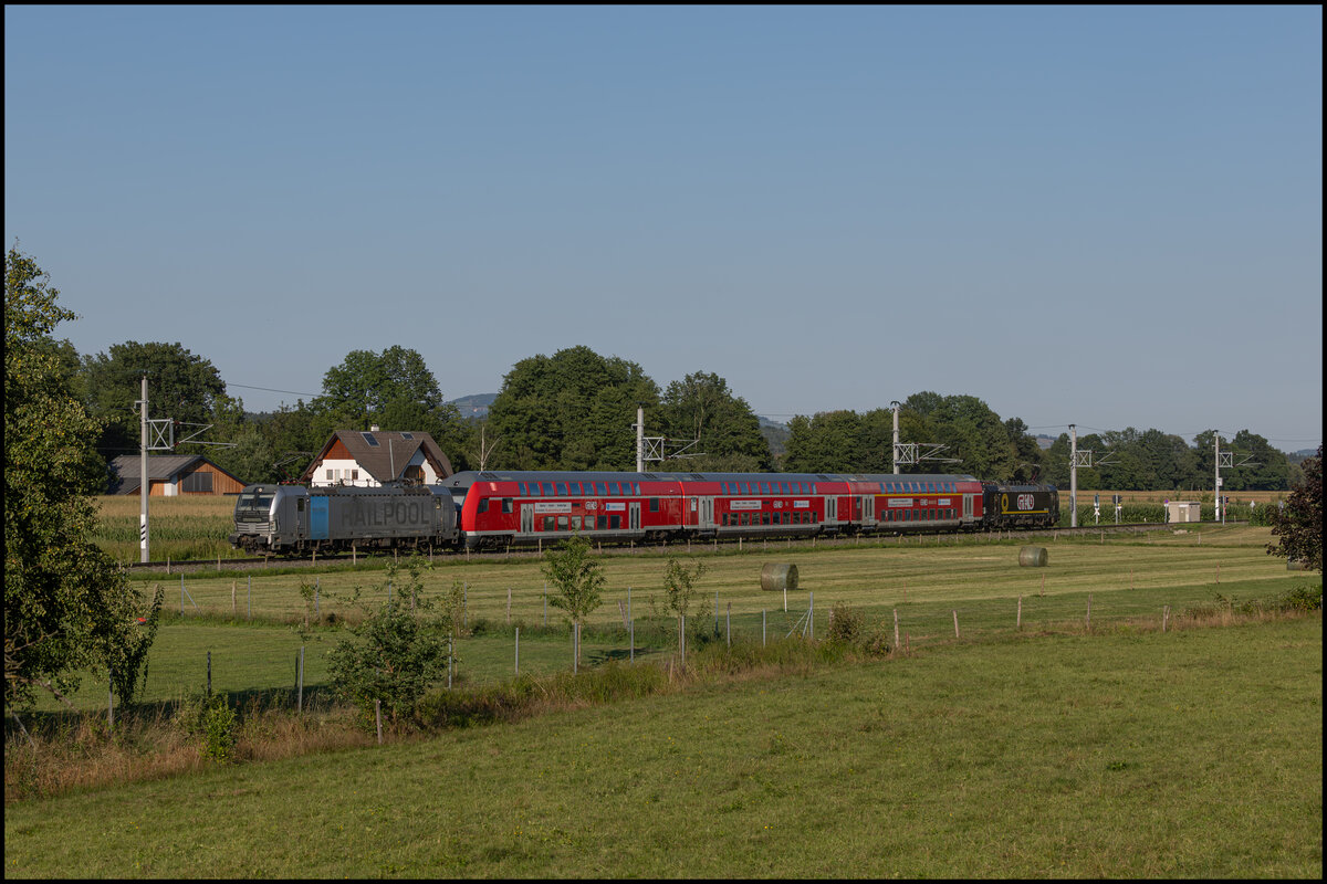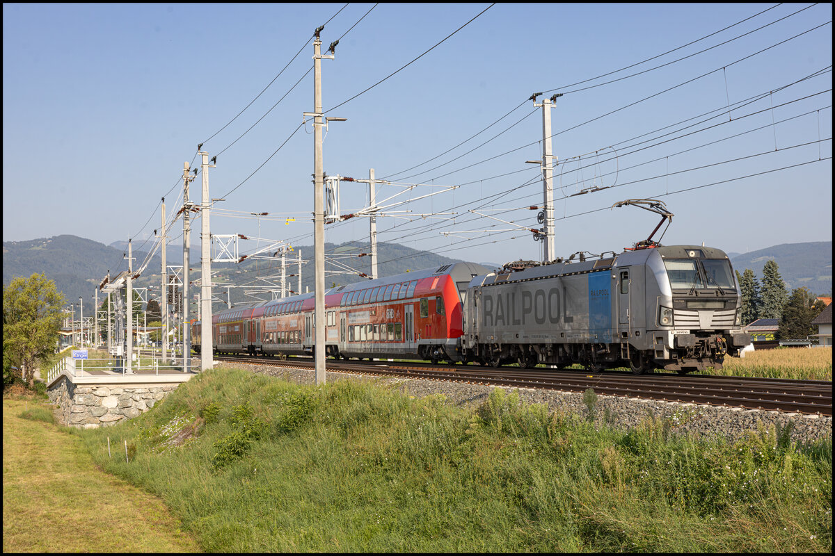 Leider immer gezogen waren vom "Dani" nur Nachschüsse möglich . Hier erreicht er im Zuge einer Messfahrt am 13.08.2025 den Bahnhof Weststeiermark.