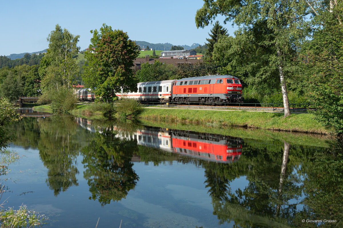 249 048-0 am 16.08.2025 in Aalen. Die 218 256-6 der NeSa wollte unbedingt auch noch mit aufs Bild.