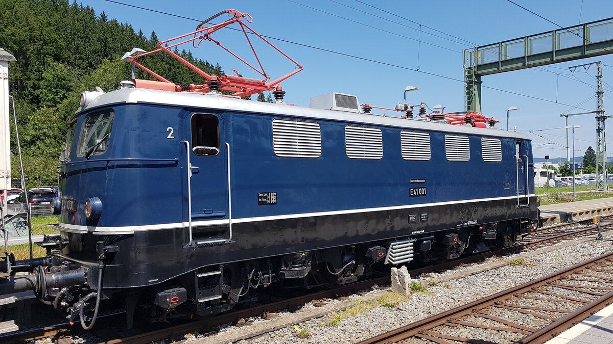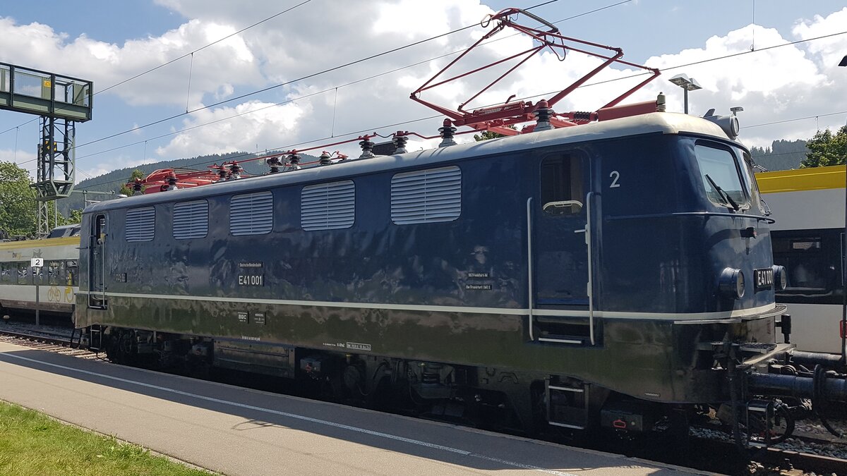 am 09.08.2025 ist E41 001 im Bahnhof Titisee bereit für eine Sonderfahrt nach Seebrugg