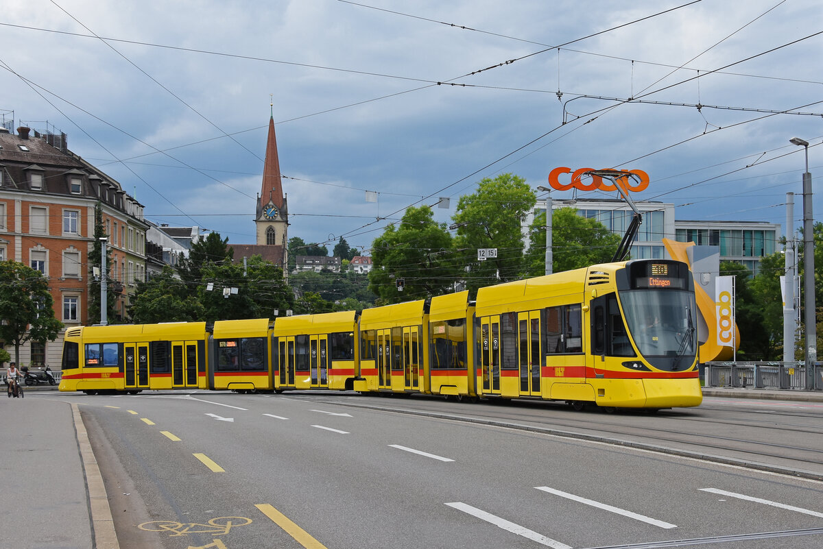 Be 6/10 Tango 159, auf der Linie 11, überquert am 19.07.2025 die Münchensteinerbrücke. Aufnahme Basel.