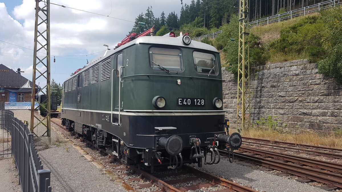 E40 128 steht im Bahnhof Seebrugg im Schwarzwald am 10.08.2025