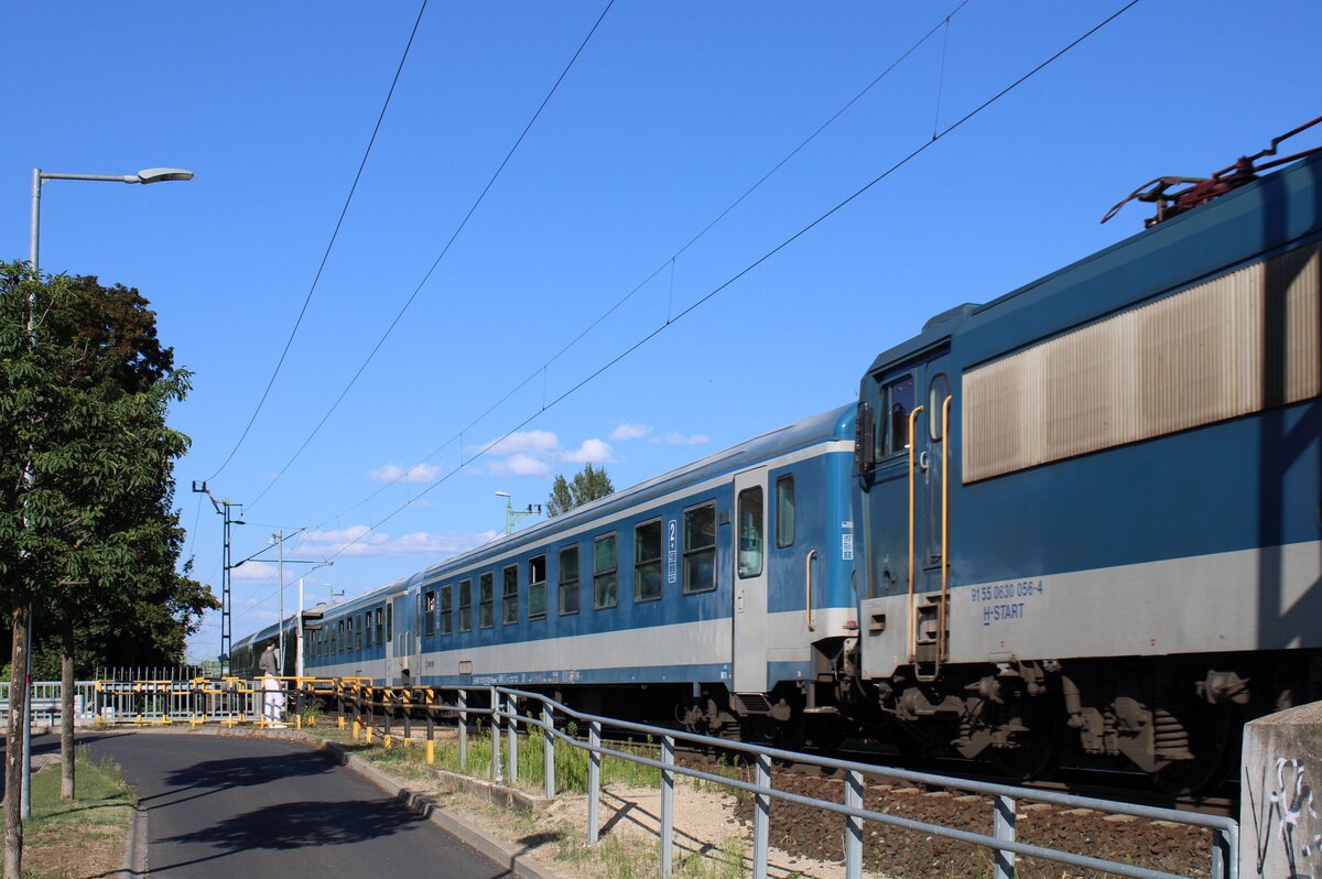 Ein MÁV-START Bpme-Wagen im IC 1206  Agram  von Budapest-Keleti nach Zagreb GK, am 23.07.2025 in Siófok.