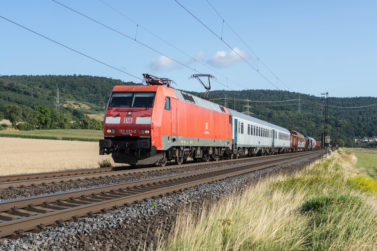 152 055-0 mit einem gemischten Güterzug bei Reilos am 06.08.2025