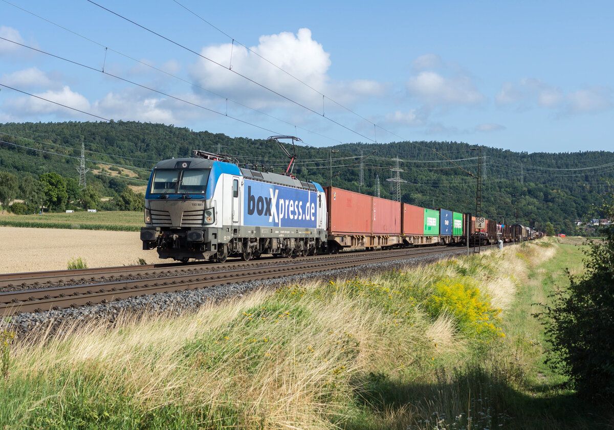 193 881-0 mit einem Containerzug bei Reilos am 06.08.2025