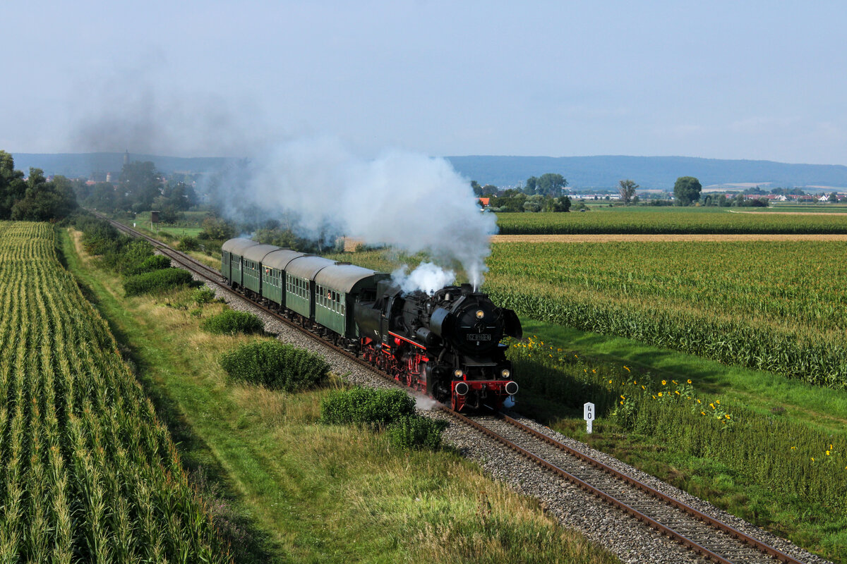 Am Morgen des 17.08.2025 passiert 52 8168 mit einer schönen Dampffahne und einem lauten Pfiff eine Horde Fotografen bei Löpsingen. Am Haken hat sie den P 86770 nach Gunzenhausen. Grüße an alle getroffenen Fotografen!