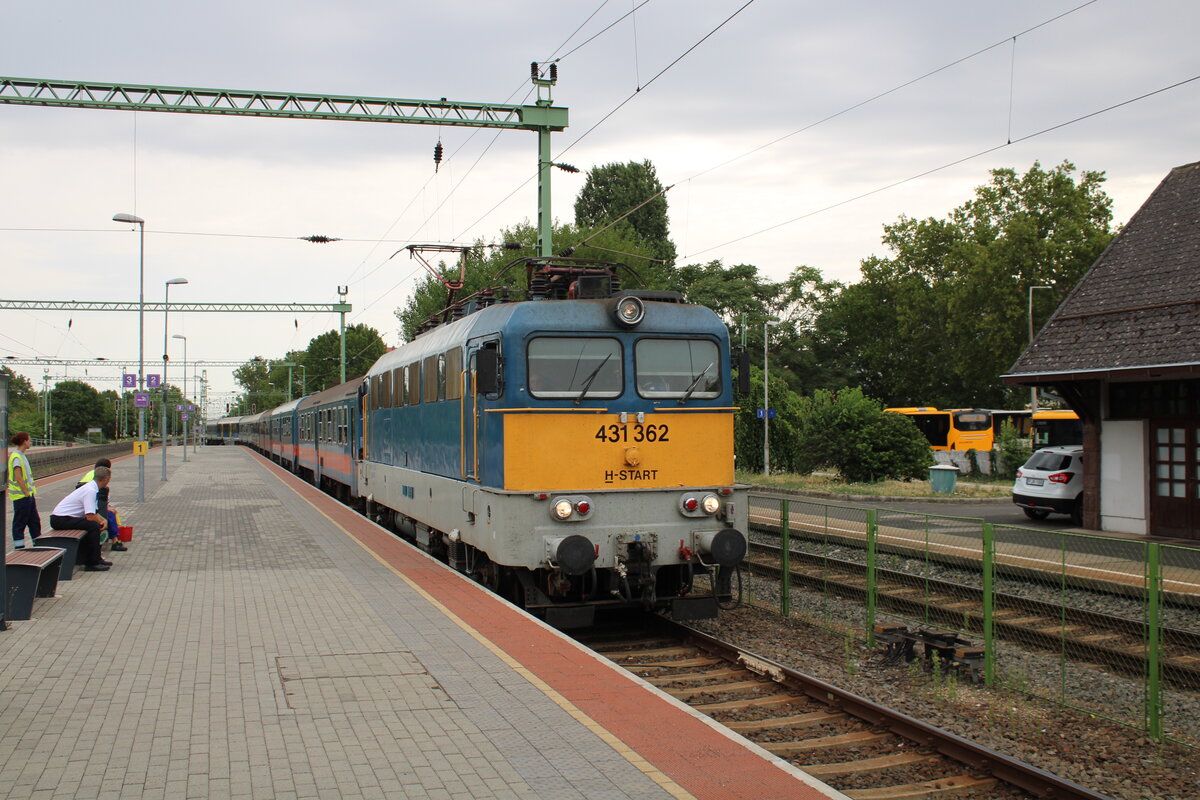 MÁV-START 431 362 mit dem IR 18592 "Déli ← Parti" aus Budapest-Déli, am 26.07.2025 in Siófok.