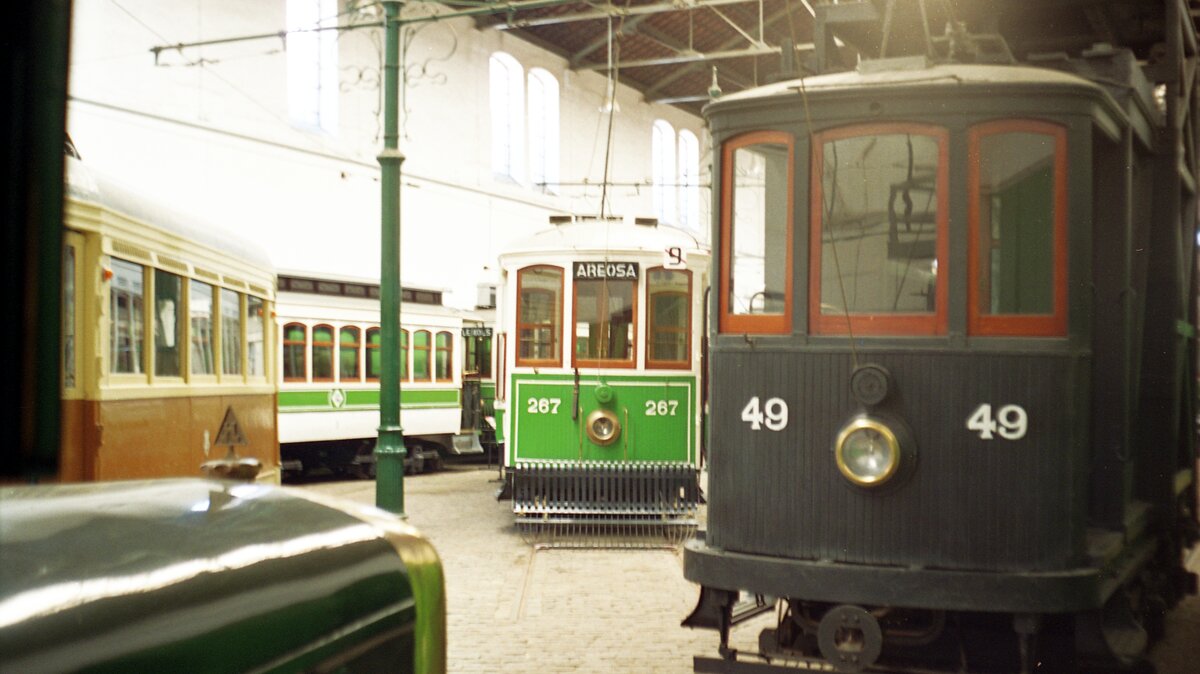 Porto Elétricos__Museu do Carro Eléctrico__Im Vordergrund Tw Nr.100 (Nachbau Wagentyp von 1910) .__06-2000
