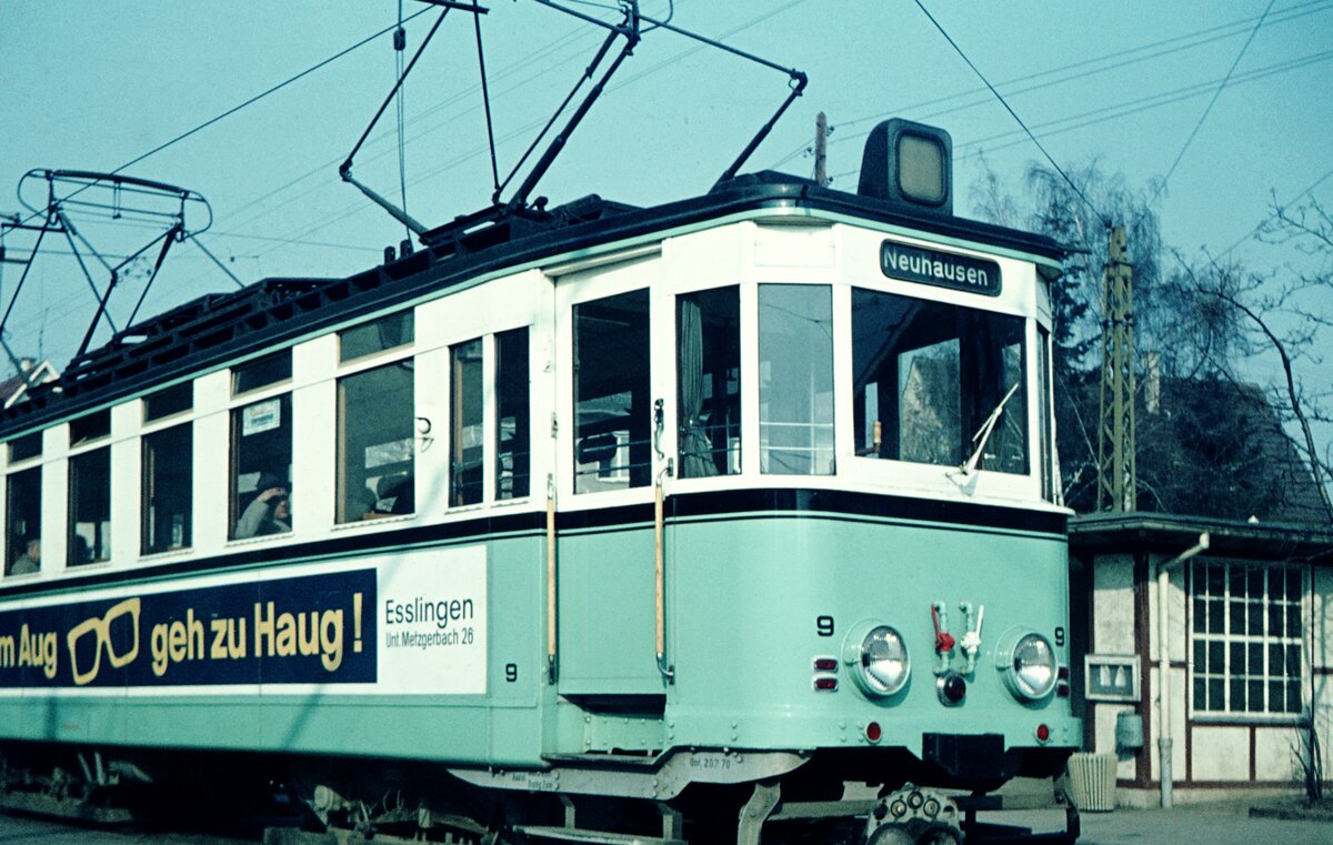 END Straßenbahn Esslingen-Nellingen-Denkendorf__Die aber auch nach Scharnhausen und Neuhausen fuhr.__Tw 9 nach Neuhausen an der Haltestelle Nellingen Hindenburgstraße.__05-04-1971