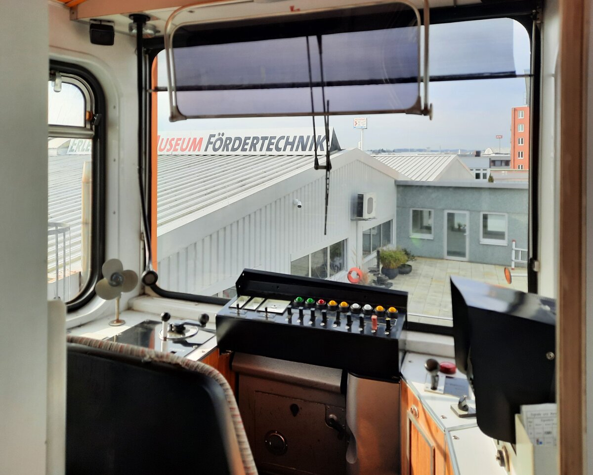 Der Führerstand vom Wagen 5 der Wuppertaler Schwebebahn, am 16.02.2023 im Fördertechnikmuseum Sinsheim.