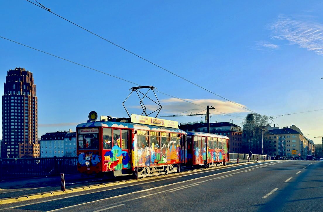 VBK 369 als Linie 2 nach Wolfartsweier, am 06.02.2025 in Karlsruhe Hbf.
