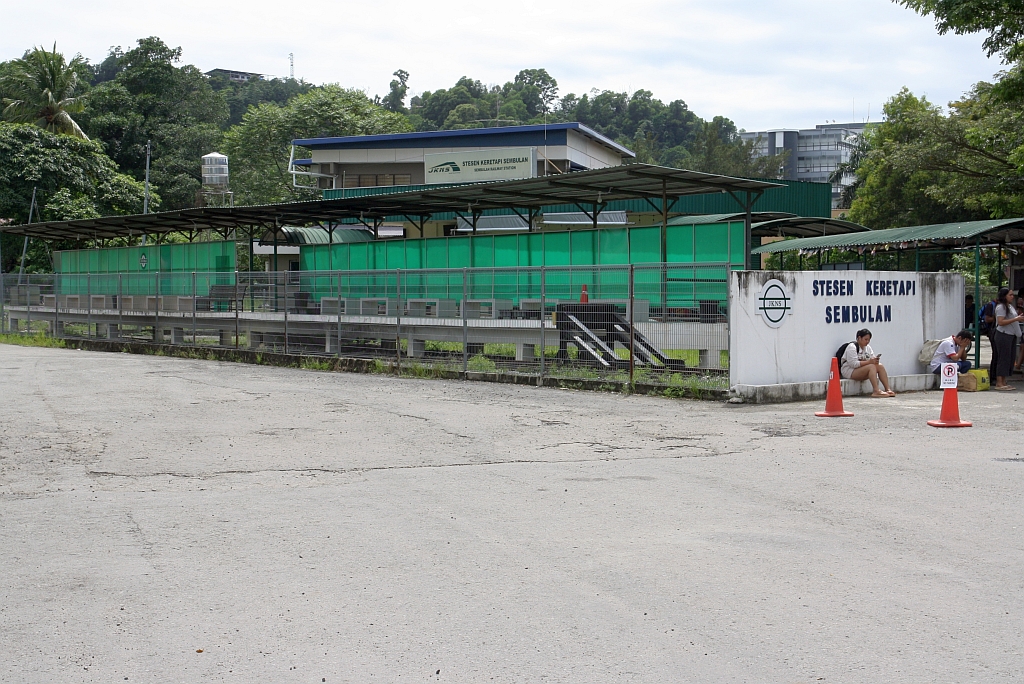 Nach der Ankunft als PU 506 (Beaufort - Sembulan) fährt die Garnitur als Leerpersonenzug die 1,75 Km zurück zur Stesen Tanjung Aru zur Hinterstellung. - Im Bild vom am 09.Februar 2025 dieser Leerpersonenzug gleich nach der Stesen Sembulan (ehemals Sekretariat) mit dem JKNS 8903-1 als letztes Fahrzeug.