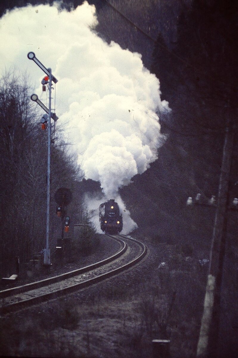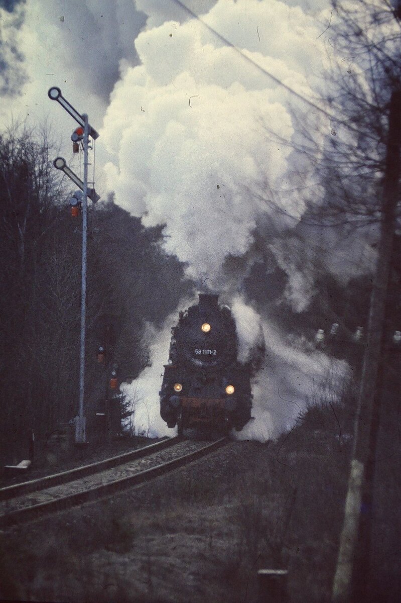 003 (Plandampf im Thüringer Wald Rennsteig & Lobenstein 18.- 21. März 1993 ) Einfahrt Gehlberg Vorspann 58 1111-2 mit 44 1093-2 mit Dg 55613 von Arnstadt nach Meiningen