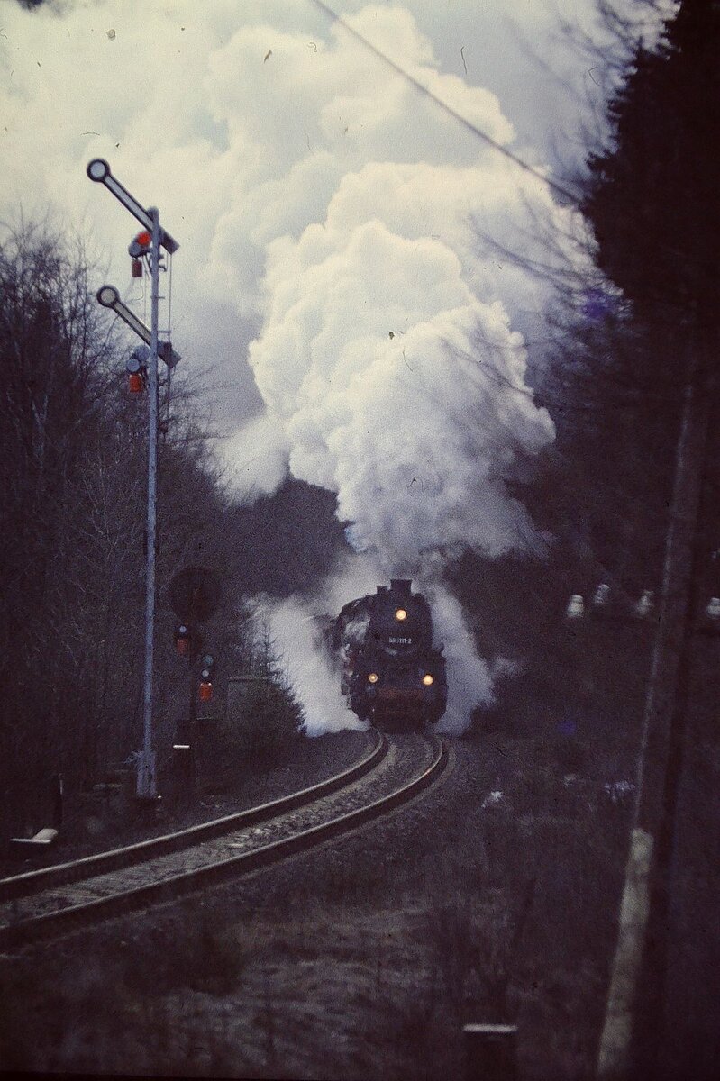 001 (Plandampf im Thüringer Wald Rennsteig & Lobenstein 18.- 21. März 1993 ) Einfahrt Gehlberg Vorspann 58 1111-2 mit 44 1093-2 mit Dg 55613 von Arnstadt nach Meiningen