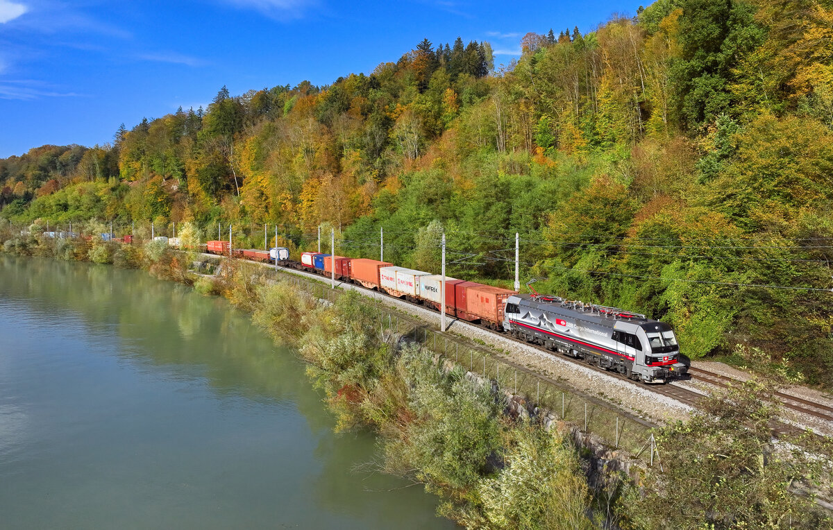 1193 980 mit einem Containerzug am 24.10.2024 bei Ingling.