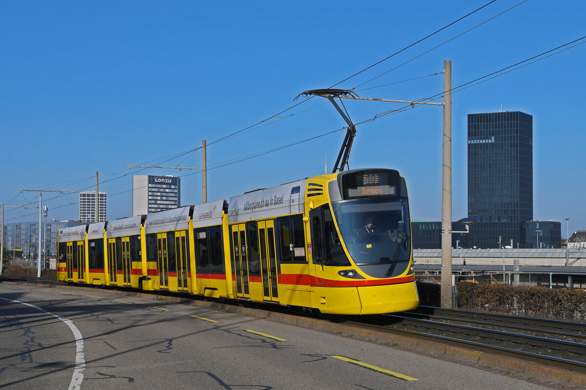 Be 6/8 Combino 311, auf der Linie 2, fährt am 25.11.2024 zur Haltestelle Hirzbrunnen/Claraspital. Aufnahme Basel.