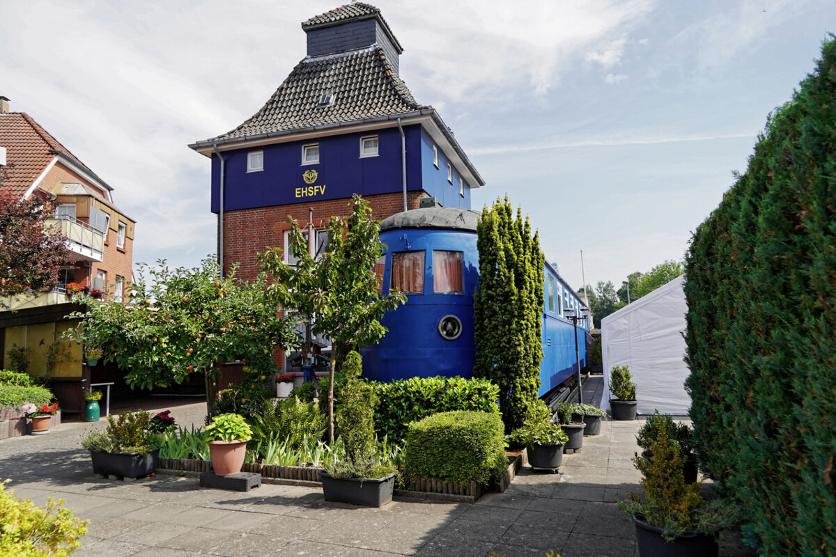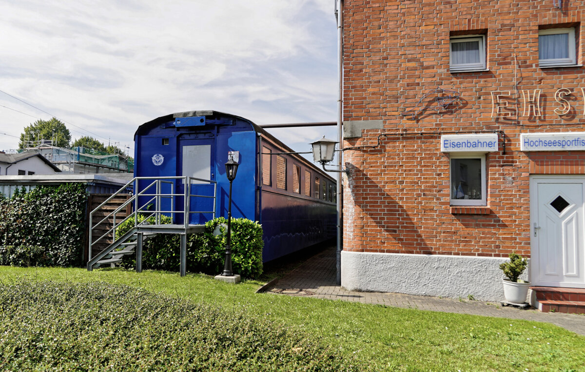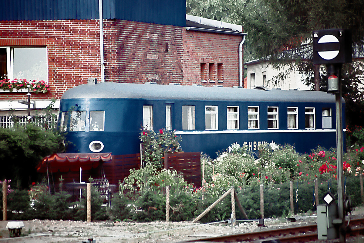 Über 40 Jahre alt ist zum Zeitpunkt des Hochladens dieses Bildes des SVT 137 851a vom 26.08.1984 in Lübeck-Travemünde (ab 1947: SVT 06 106d). Dieser vordere Teil des SVT der Bauart "Köln" wird vom Eisenbahner-Hochsee-Sportfischer-Verein genutzt.