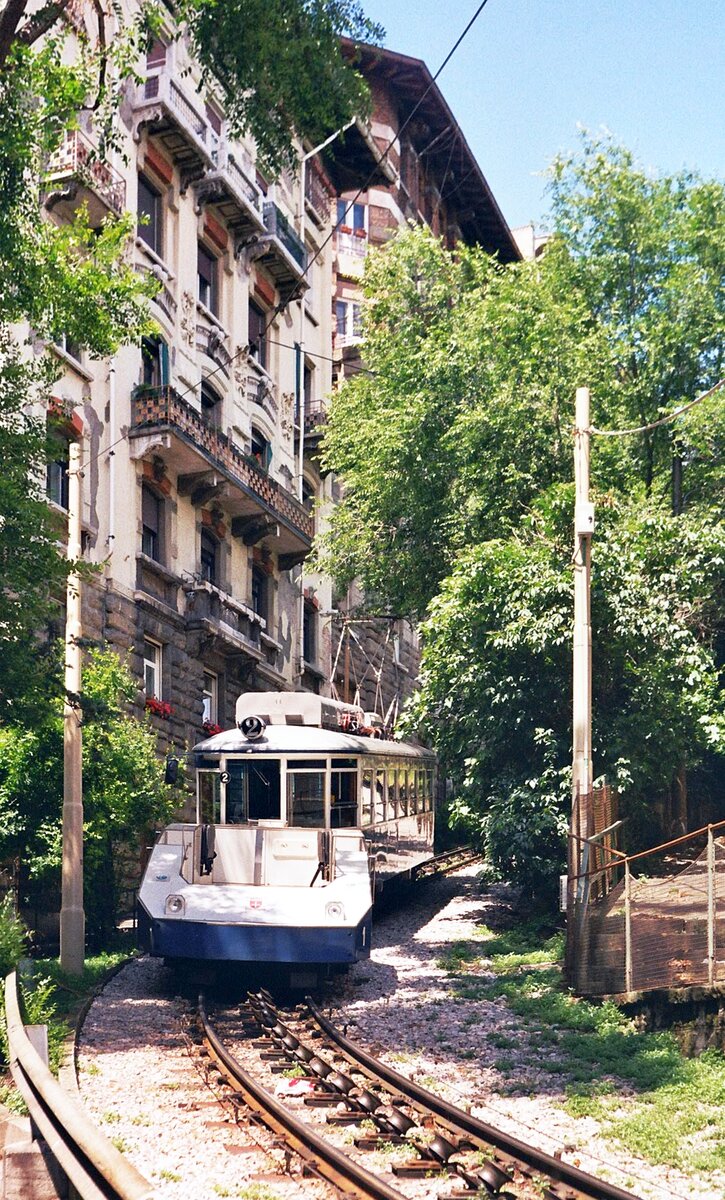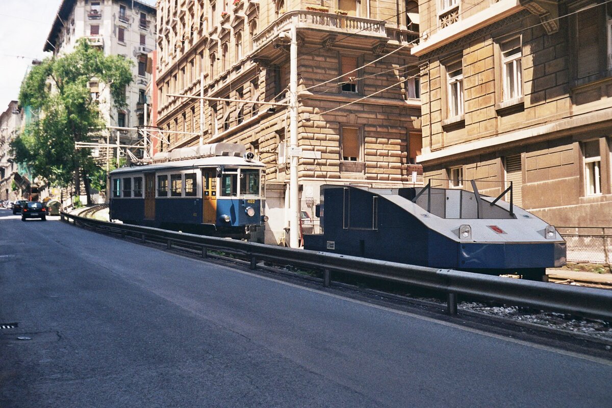 Tram Triest-Opicina__Im zwei-gleisigen Seilbahn-Abschnitt. Schubwagen Nr. 2 schiebt "seinen" Tw bergwärts.__08-06-2008