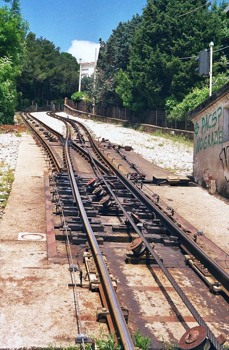 Tram Triest-Opicina__Beginn des zwei-gleisigen Seilbahn-Abschnitts. Abt'sche Weiche funktioniert hier natürlich nicht...__08-06-2008
