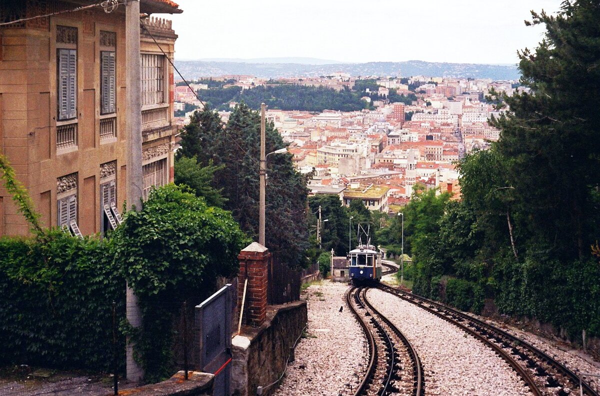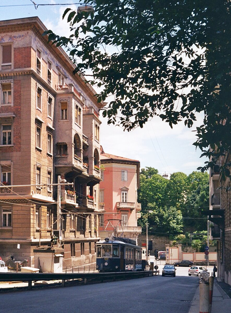 Tram Triest-Opicina__Das Gespann ist bereit für die Bergfahrt. Mehrere Blicke wert ist in Triest natürlich auch immer die Architektur...__08-06-2008