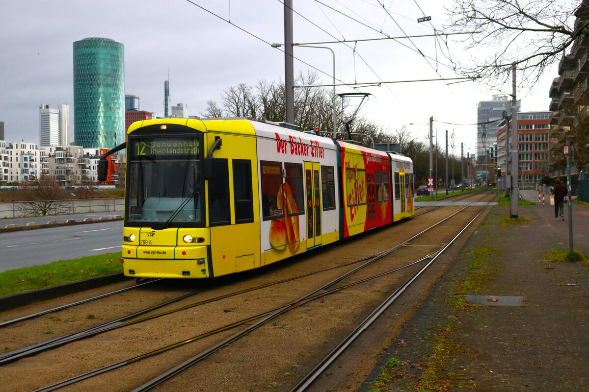 VGF Straßenbahn Frankfurt am Main Bombardier Flexity Classic S-Wagen 269 am 21.12.24 als Linie 20