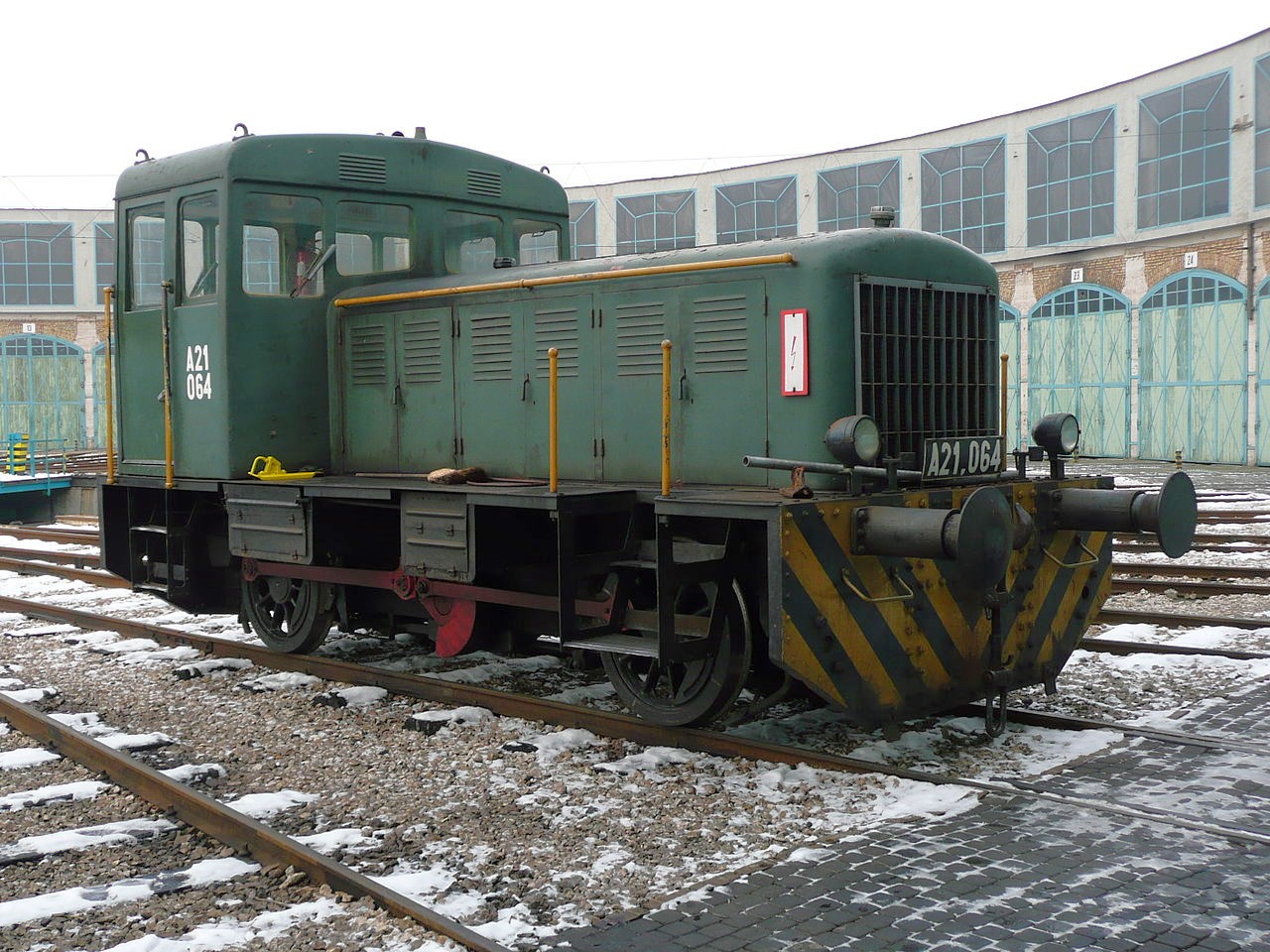 Diesellokomotive M 28 mit der Inventarnummer A 21 064, fotografiert im Januar 2010 im Bahnpark Budapest