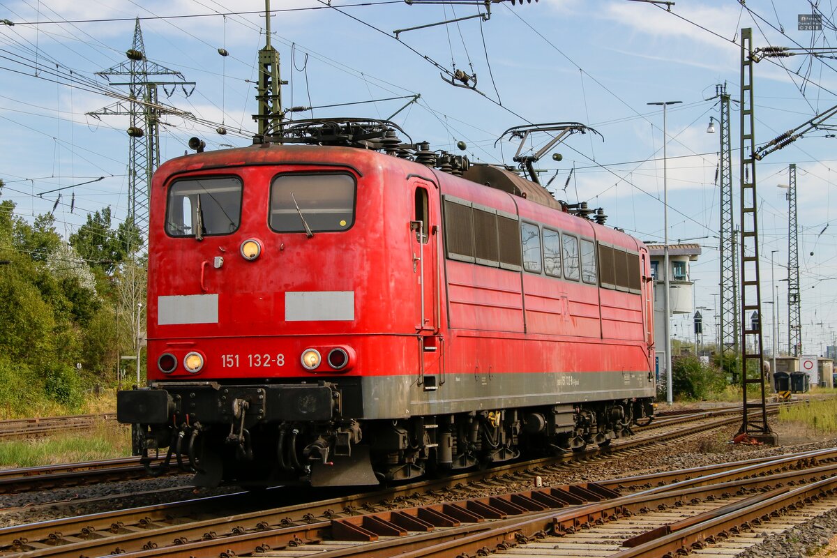 Eine 155 der DB Cargo mit Güterzug aus der Modelleisenbahnperspektive vom Kölner Fernmeldeturm Colonius am 3.08.2007 (50.947629, 6.938077)