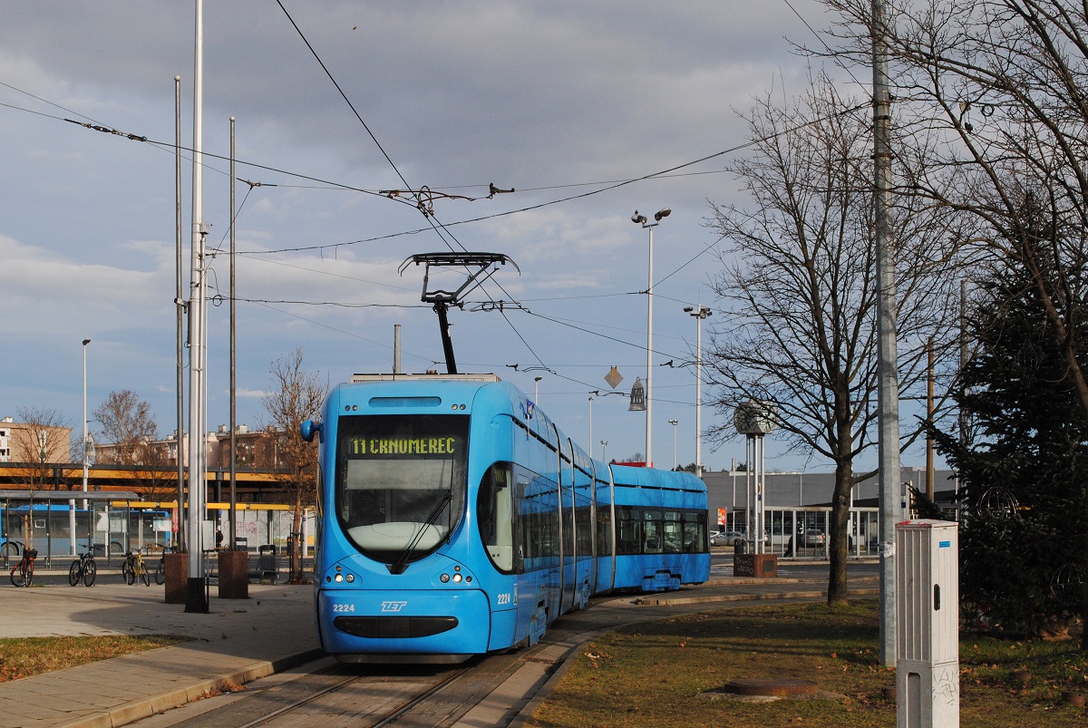 Tw.2224 der Linie 11 nach Crnomerec verläßt die im Osten der Stadt gelegene Endstelle Dubec. (06.01.2025)