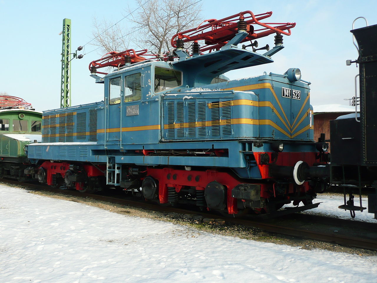 Lokomotive V 41 2010 ausgestellt im Bahnpark Budapest, fotografiert im Januar 2010