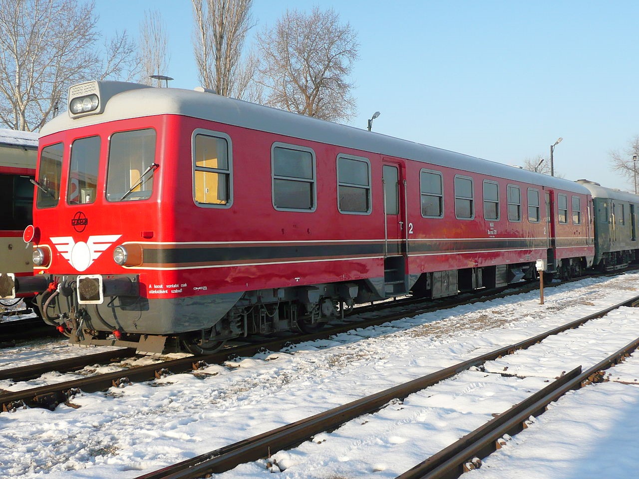 Triebwagen Bamot der MAV im Eisenbahnmuseum Budapest, fotografiert im Januar 2010. Die Triebwagen wurden auch als Raba-Balaton-Triebwagen bezeichnet