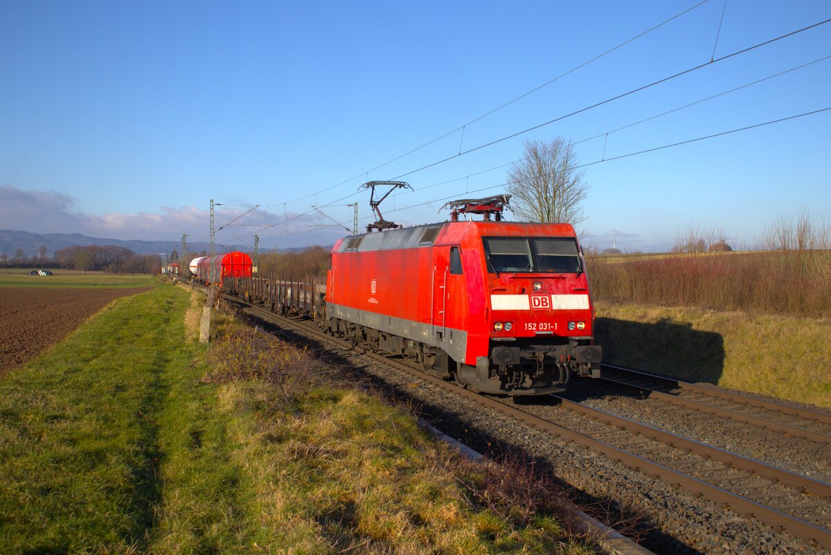 DB Cargo Siemens 152 031-1 mit Mischer bei Nieder-Mörlen am 11.01.25