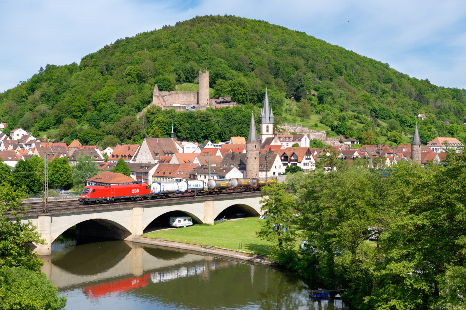 1116 086 ÖBB mit einem KLV-Zug bei Gemünden am Main Richtung Aschaffenburg, 01.06.2021