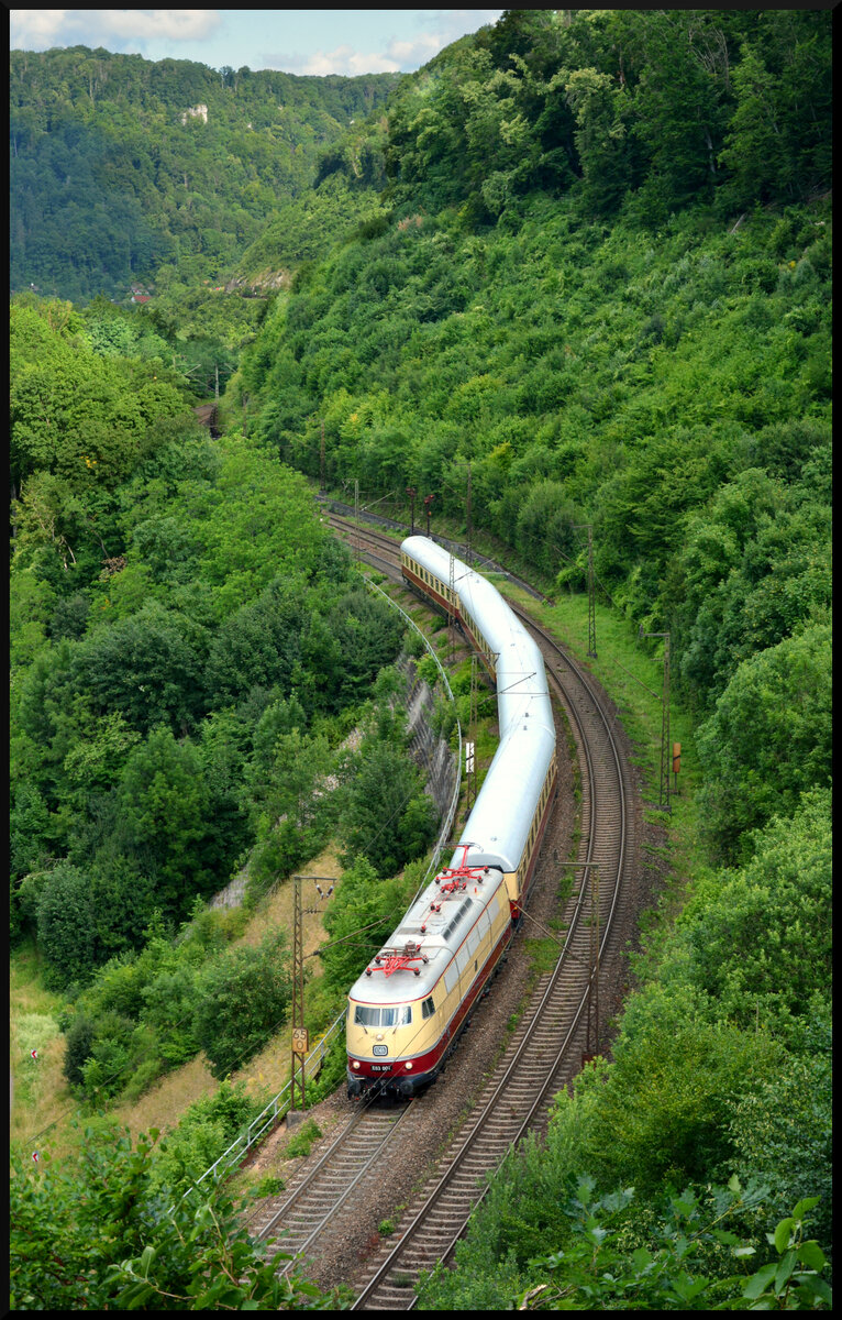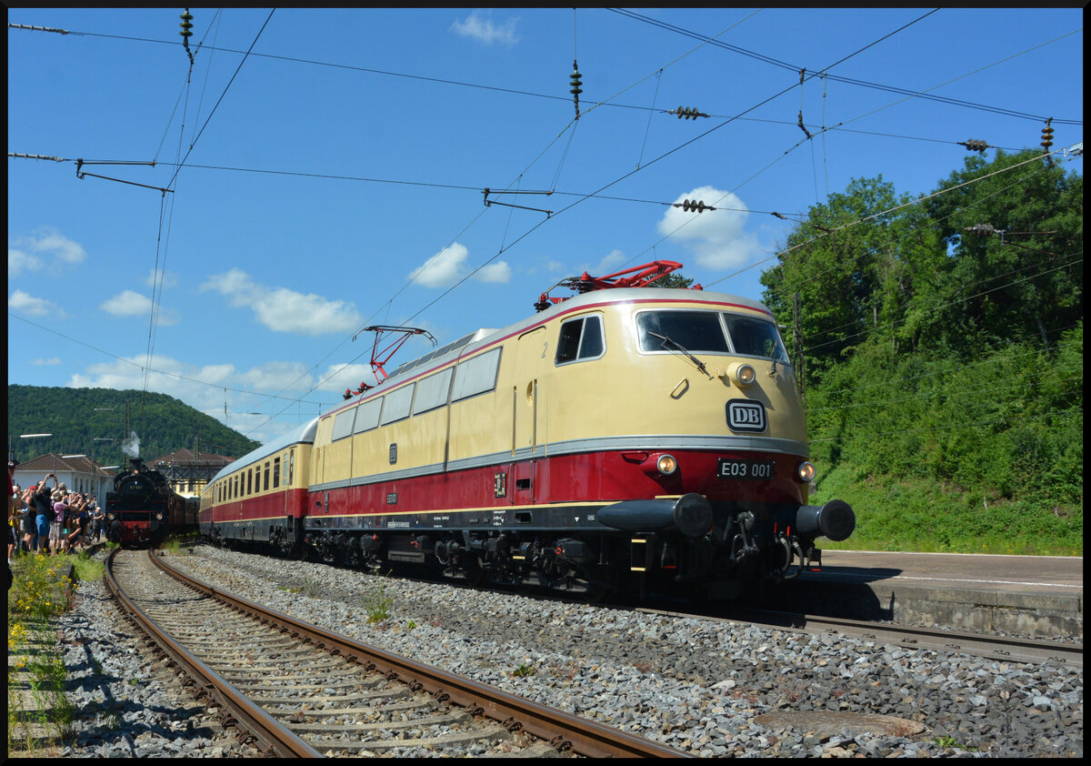 175 Jahre Geislinger Steige: DB Museum E03 001 mit dem D336 Stuttgart - Ulm am 28.06.2025 auf Bergfahrt.