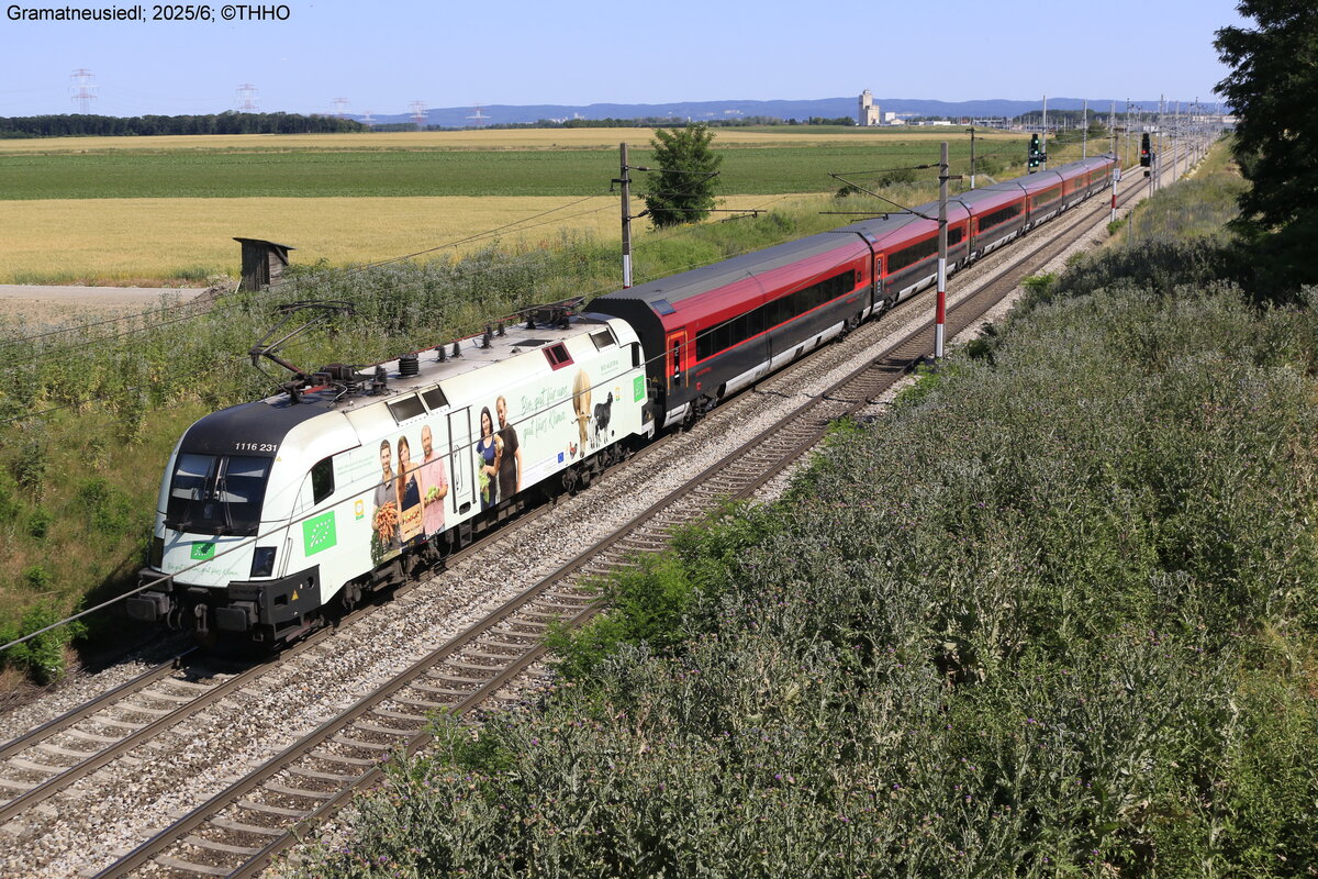 1116 225 als Mittellok des RJX 160/660 (Innsbruck, 02.07.2025)