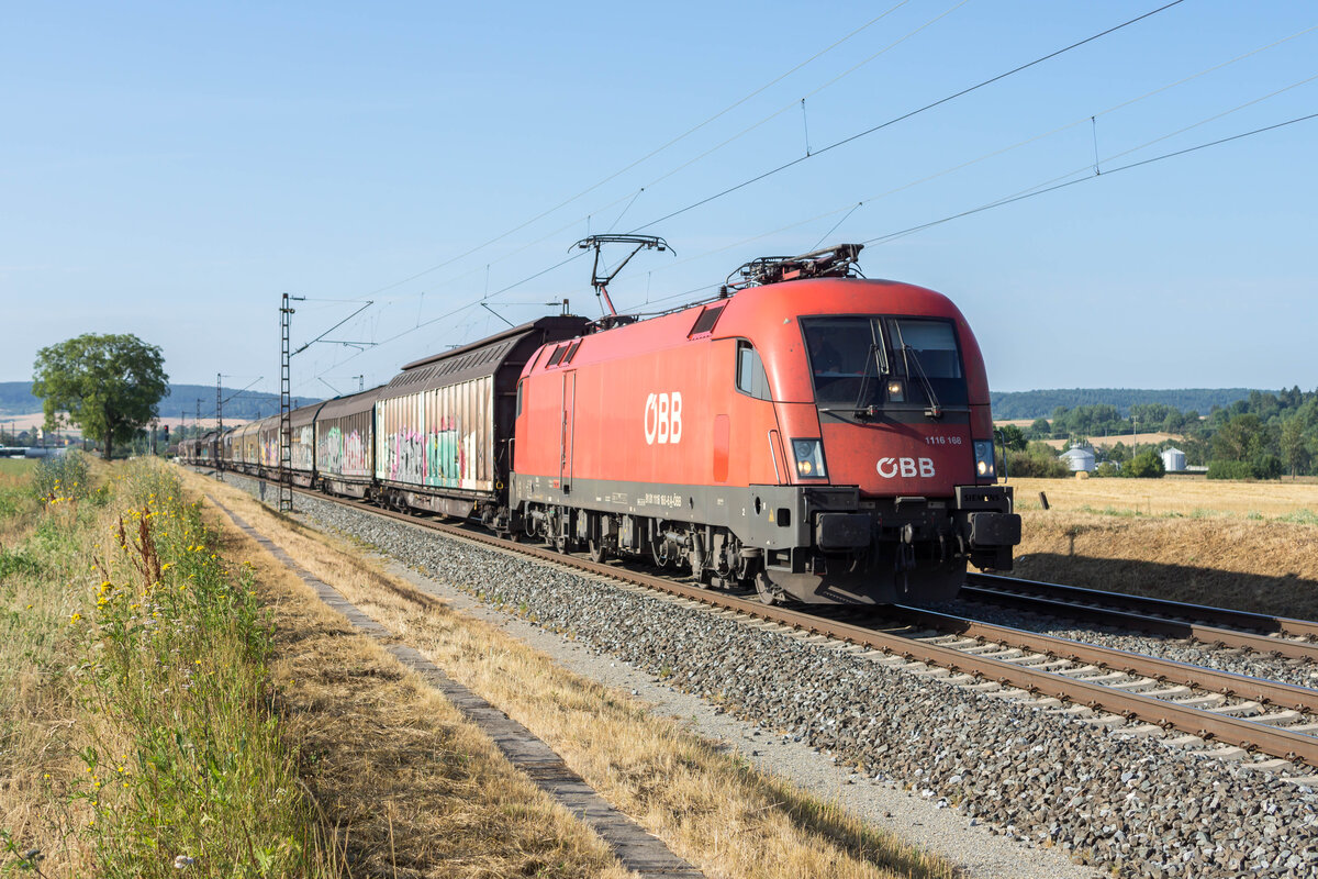 1116 168-6 mit einem gemischten Güterzug bei Retzbach-Z. am 10.07.2025