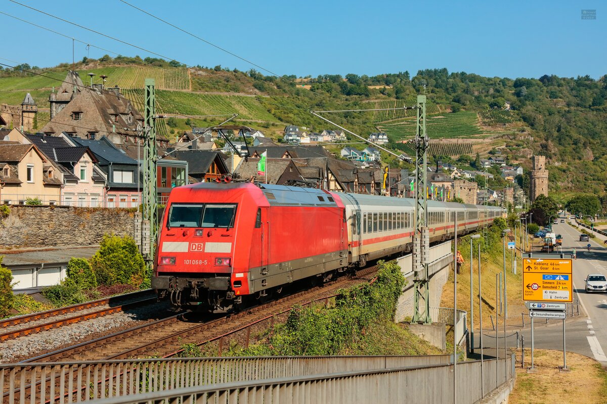 DB 101 068-5 schiebend mit IC in Oberwesel, Juli 2025.