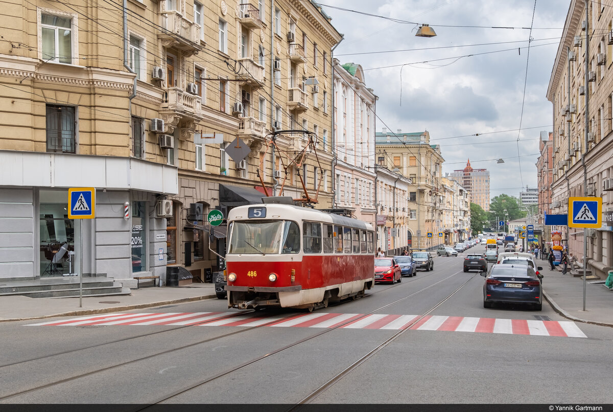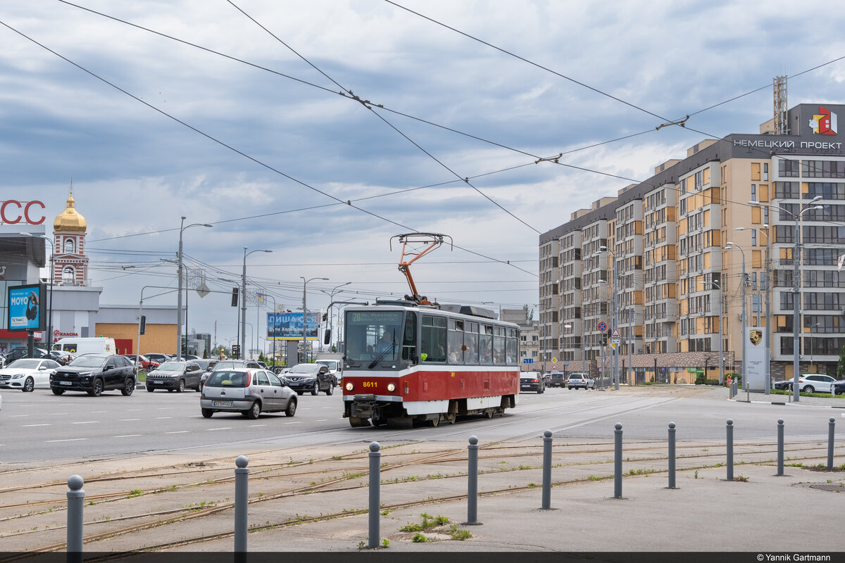 In Lettlands Hauptstadt Riga sind neben modernen Niederflurtrams noch viele Tatra-Straßenbahnen unterschiedlicher Typen im Einsatz. Einer davon sind die Fahrzeuge vom Typ Tatra T6B5, die in Riga als T3MR bezeichnet werden. Ein Gespann mit dem im Jahr 1990 gebauten Wagen 35021 konnte am 14.07.2025 am Zigfrīda Annas Meierovica Bulvāris unweit der Altstadt auf der Linie 11 zur Fahrt nach Ausekļa iela aufgenommen werden.