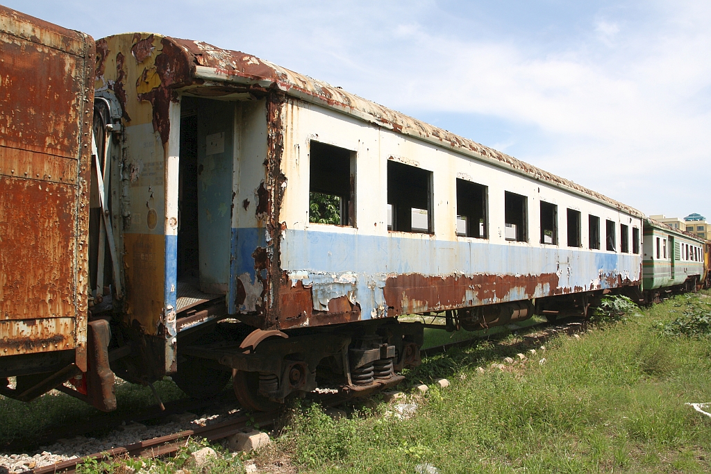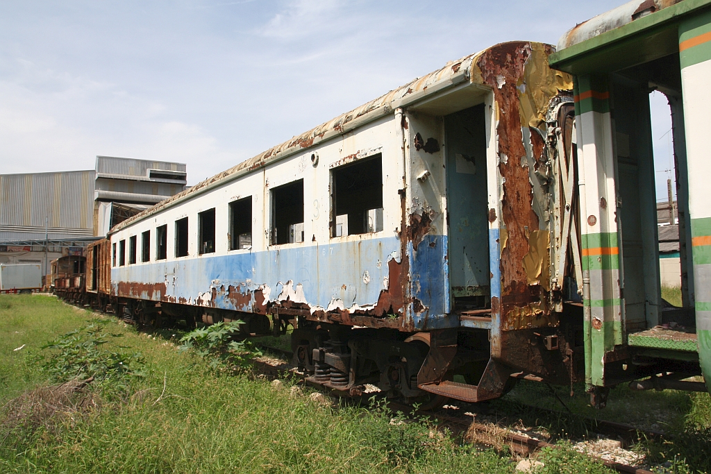 Auch wenn der บชส. 167 (บชส. =BTC./Bogie Third Class Carriage) nur äußerlich aufgearbeitet wird, so wartet hier noch jede Menge Arbeit. - Bild vom 16.Mai 2025 in der Songkhla Station.