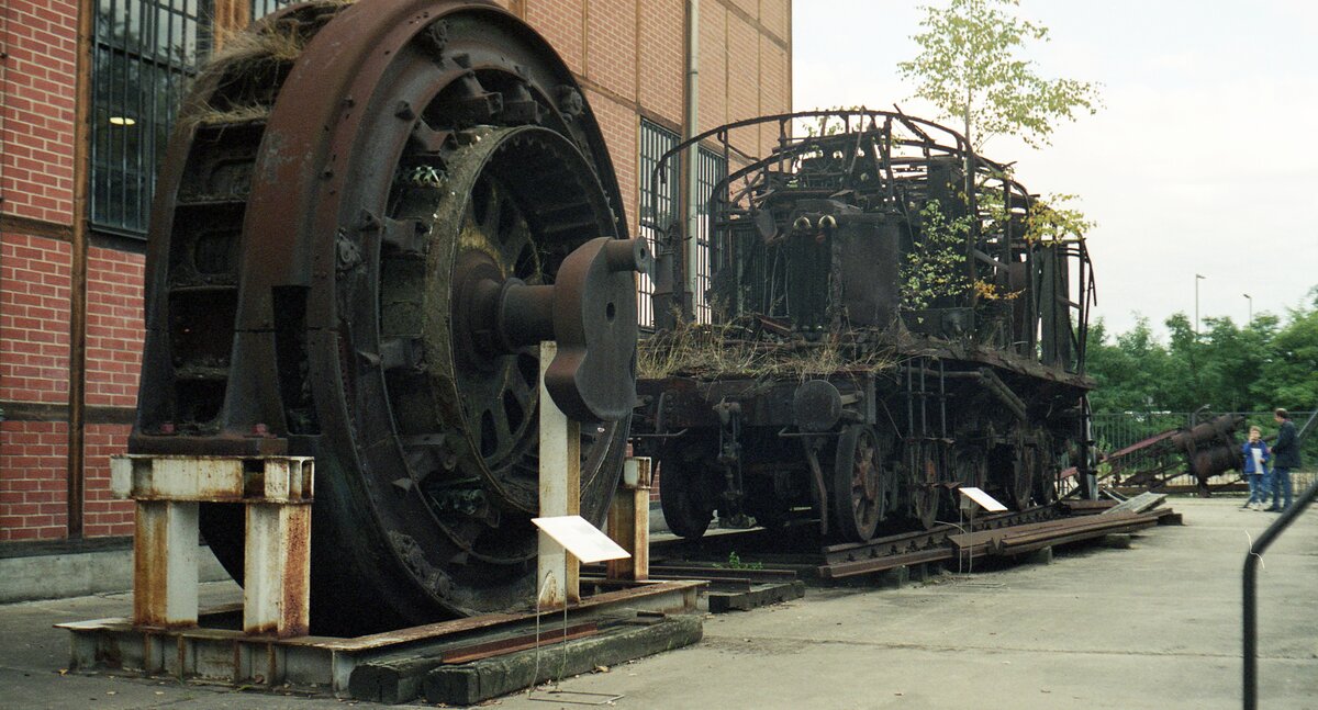 Berlin__Ehemaliges Verkehrs-und Baumuseum am Hamburger Bf.: Jetzt ist es für einen Service- und Instandhaltungsvertrag wirklich zu spät ! Eine der ersten deutschen Elloks hat den jahrzehntelangen Aufenthalt unter freiem Himmel nicht gut überstanden.Hier neben den Wagenhallen bei der Monumentenbrücke. Es handelt sich um die Reste der preußischen ES 2, die nach ihrem  Austrag  auf der Wiesen- und Wehratalbahn 1927 ins Berliner Verkehrs- und Baumuseum kam. Erlitt im 2. Wk. einige Schäden und geriet danach zwischen die Fronten, der Bereich war nur für Mitarbeiter der Reichsbahn zugänglich, mit dem S-Bahnvertrag von 1984 wurde der Zugang  wieder möglich; die ES 2 kam ins Deutsche Technikmuseum Berlin. Dessen Leiter, Alfred Gottwaldt, war fasziniert von der jahrzehntelangen Einwirkung von Witterung und Natur und beschloss und ließ dem weiterhin freien Lauf, im Jahr seines Ablebens 2015 kam die Lok unter Dach ins Museumsdepot. [Quellen:Wiki+W.D.Richter].__29-09-2002