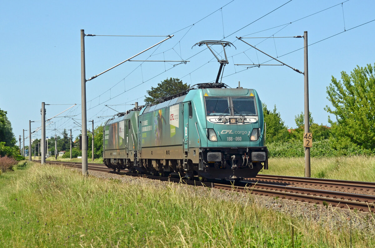 188 060 und 188 068 der CFL Cargo rollten am 12.06.25 ohne Anhang durch Greppin Richtung Bitterfeld.