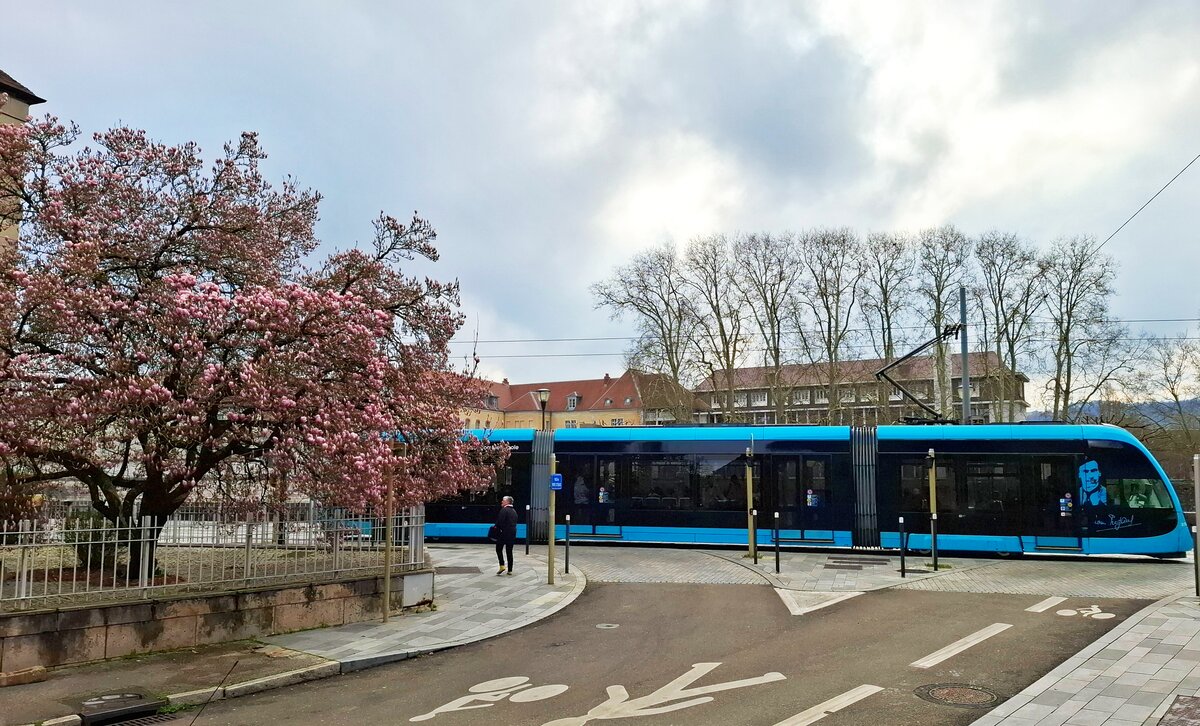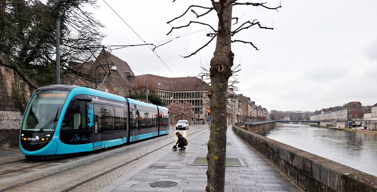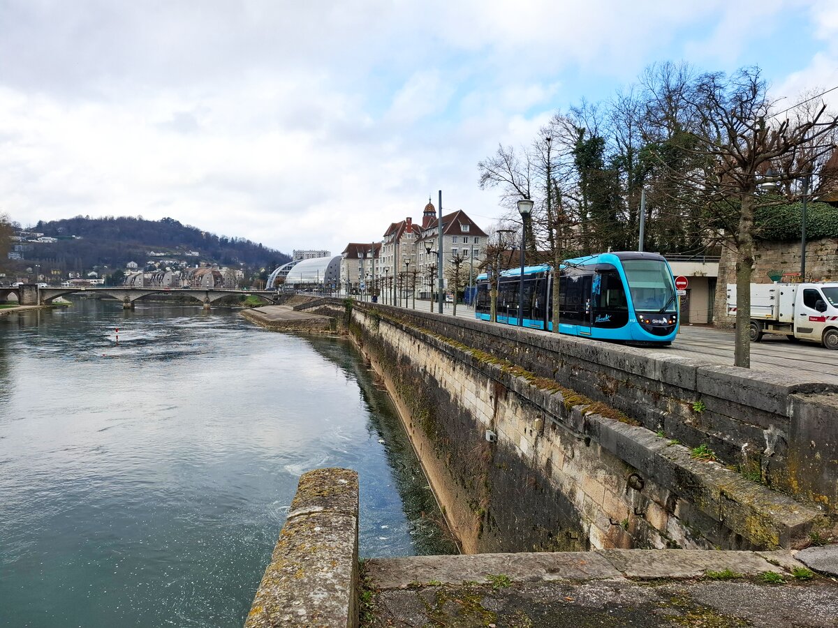 Tram Besançon__Tw am Quai Veil-Picard nahe der Haltestelle 'Canot' am Doubs-Ufer.__03-2025