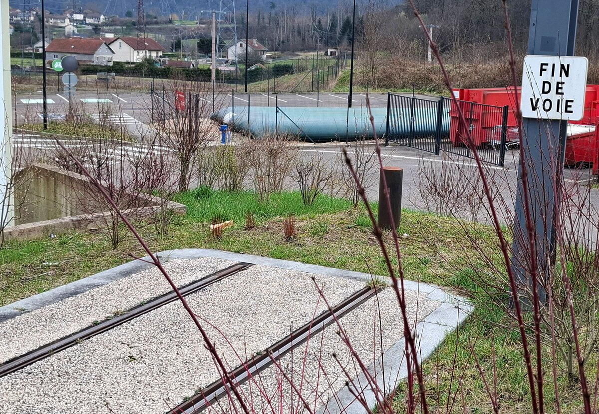 Tram Besançon__"Gleisende". Nützlicher Hinweis für die Fahrer am Streckenende in Chalezeule.__03-2025