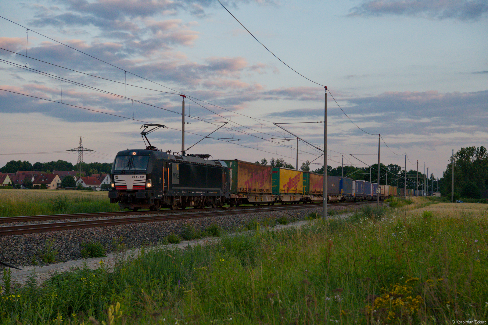Kurz vor Sonnenuntergang gelang mir am 31. Dezember 2024 noch diese stimmungsvolle Aufnahme der DEVK-Werbelok 101 088 vor dem München-Nürnberg-Express bei Fahlenbach in der Hallertau. Mit dem RE 4025 verlangsamt sie die Fahrt bereits, da der nächste Halt Rohrbach nicht mehr weit entfernt ist. Seit Fahrplanwechsel bestreitet die Baureihe 101 mit dem modernisierten IC 1 Wagenpark einen Umlauf auf der RE 1 Linie, um die angespannte Situation hinsichtlich der Verfügbarkeit der Skoda-Garnituren zu entspannen.