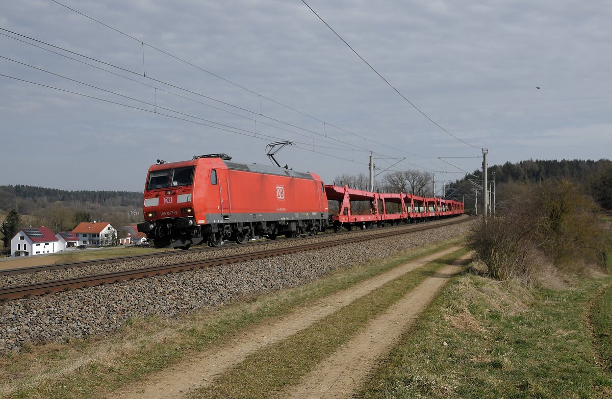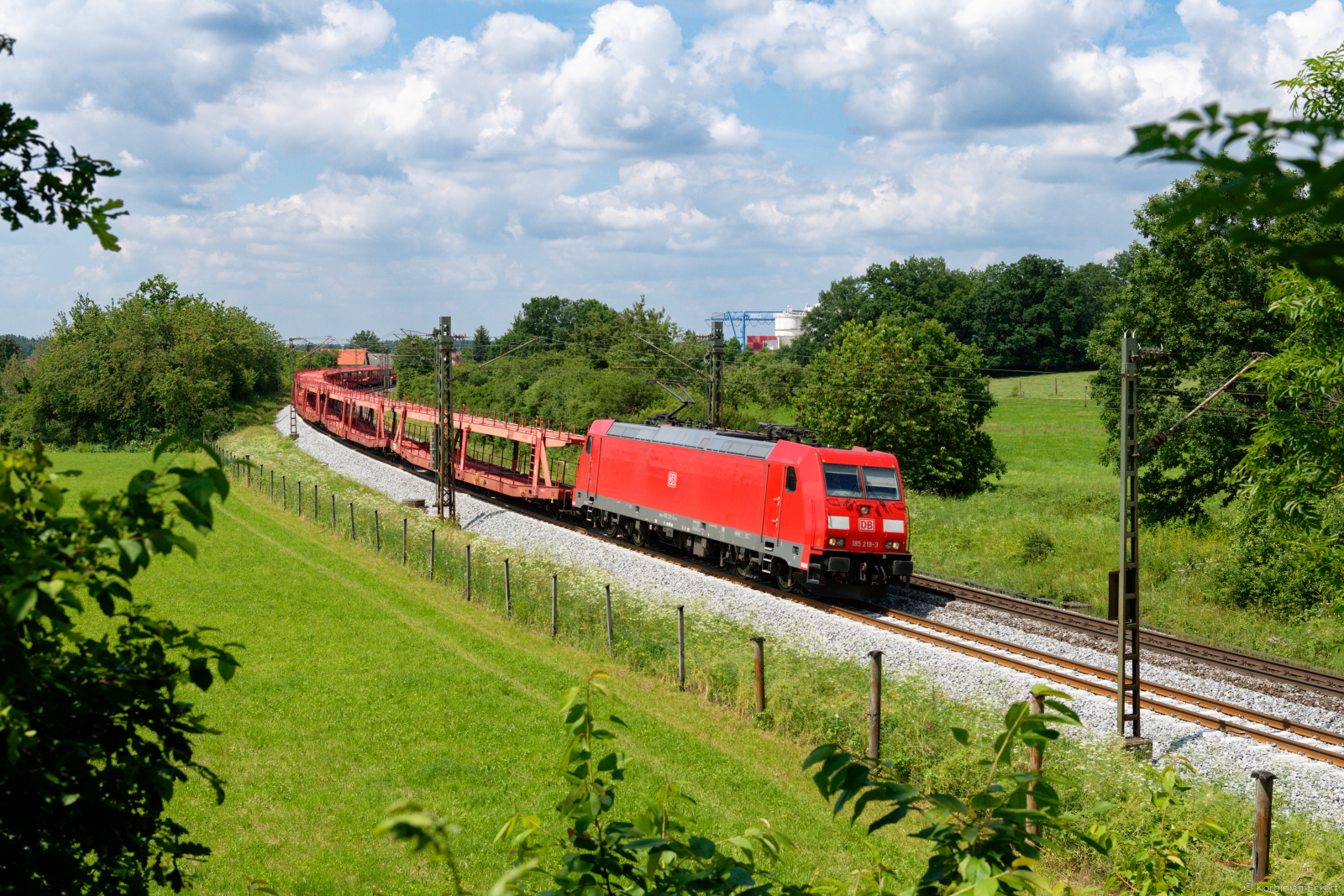 185 219 DB Cargo mit einem leeren Autotransportzug bei Postbauer-Heng Richtung Regensburg, 03.07.2021