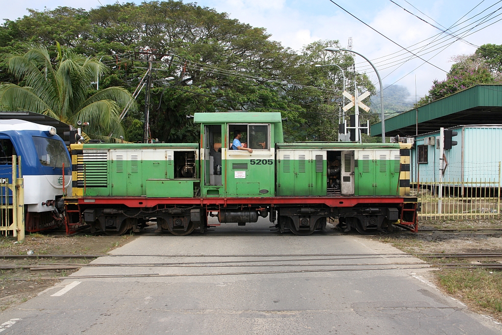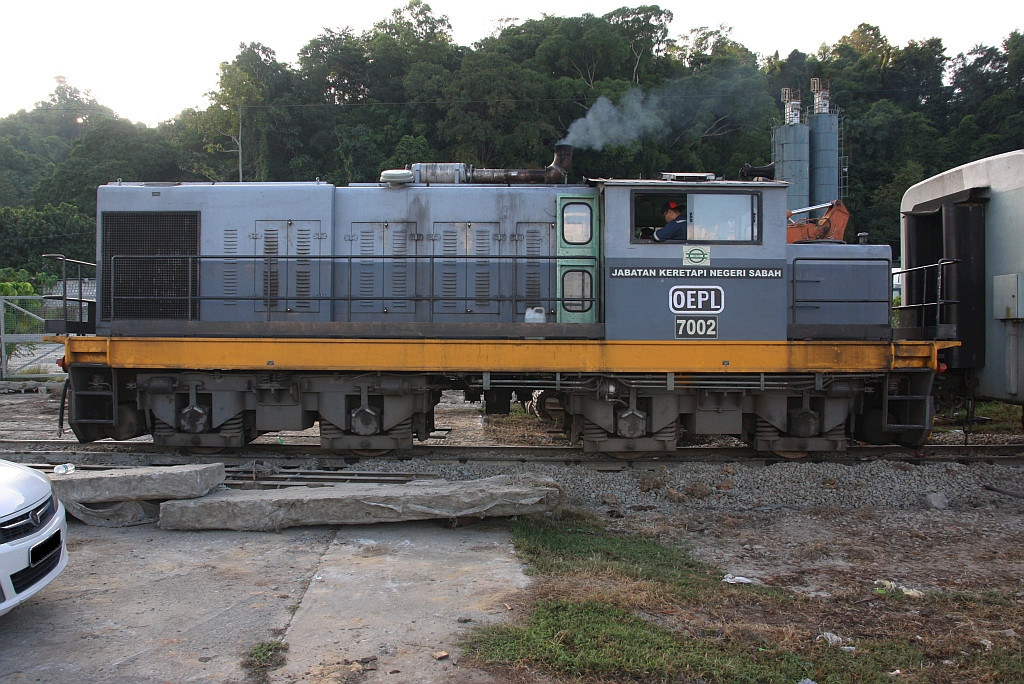JKNS 5205 (B'B' dh, Kawasaki, Kobe / Japan, Bj.1971, Fab.Nr. ???) ist am 14.Februar 2025 als Zug PS101 mit dem untauglichen JKNS 8801 (Hersteller: OEPL, Ovis Equipments Private Ltd., Indien, Baujahr: 2017) in der Stesen Tenom angekommen.